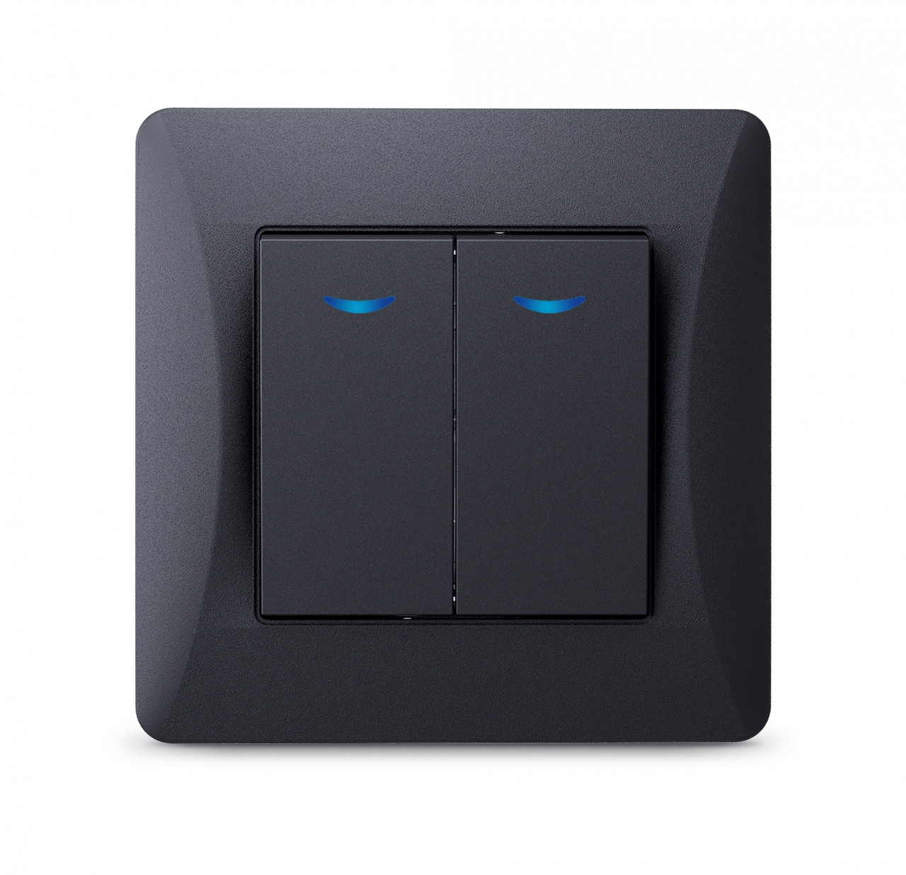 VIDEX BINERA Вимикач двоклавішний з підсвічуванням чорний графіт