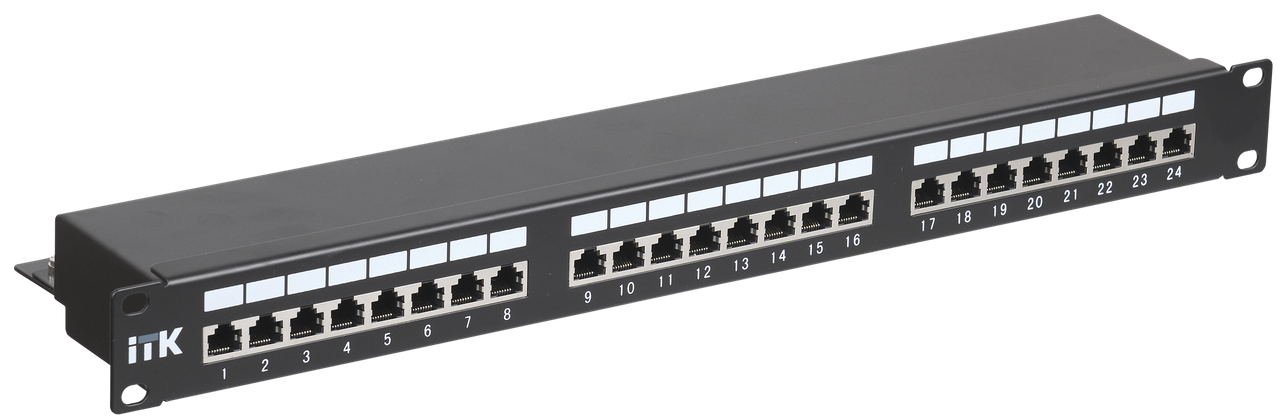 Комутаційні панелі або патч-панелі є найважливішою частиною будь-якої СКС і IT-інфраструктури будівлі та споруди з великою кількістю інформаційних розеток і термінальних портів кінцевих користувачів, які необхідно комутувати на порти активного мережевого обладнання, розміщеного в серверних і розподільних вузлах. Залежно від способу кріплення, масштабності кабельної системи, типу мережі ITK виготовляє патч-панелі для настінного монтажу або монтажу в 19-дюймовий конструктив, за кількістю портів 12-, 24-, 48-, 50-портових категорій, 3 (телефонні), 5E, 6, 6 A з кабельним організатором або без нього. Патч-панелі для монтажу в 19" шафу або стійку відповідають стандарту 19" (482,6 мм), мають отвори з лівого та правого боку для кріплення на профіль, виробляються заввишки 1 або 2 юніти. На передній стороні всі патч-панелі ITK мають спеціальний майданчик для додаткового маркування та цифрову нумерацію портів, на зворотному боці модулі IDC мають колірну та цифрову нумерацію. Також для полегшення монтажу та укладання кабелів є вироби з кабельним органайзером спереду або ззаду. Усі патч-панелі ITK категорії 5Е UTP відповідають міжнародним стандартам UL 1863, ISO/IEC 11801:2002, TIA/EIA-568-B, кодування провідників ззаду відповідно до T568B і A. Випускаються двох модифікацій: з кабельним організатором і без нього, мають спереду майданчик для додаткового маркування, постачаються в картонній коробці з кріпленням. Відповідність міжнародним стандартам і ГОСТ Р. Монтаж як на стіну, так і на 19” профіль. Подвійне зрозуміле маркування IDC-модулів і портів. Розширений частотний діапазон роботи. Виконання з екранованим захистом і кабельним органайзером. Збільшена кількість циклів увімкнення-вимкнення. Сумісні з усіма 19" шафами та стійками ITK. Підходять для кабелів і патч-кордів діаметром 22-26 AWG усіх виробників. Застосовні для мереж ISDN, 10baseT, 100 baseT, 1000baseT, EIA RS 232/485, 155 Mbit ATM, Token Ring. Технічні характеристики